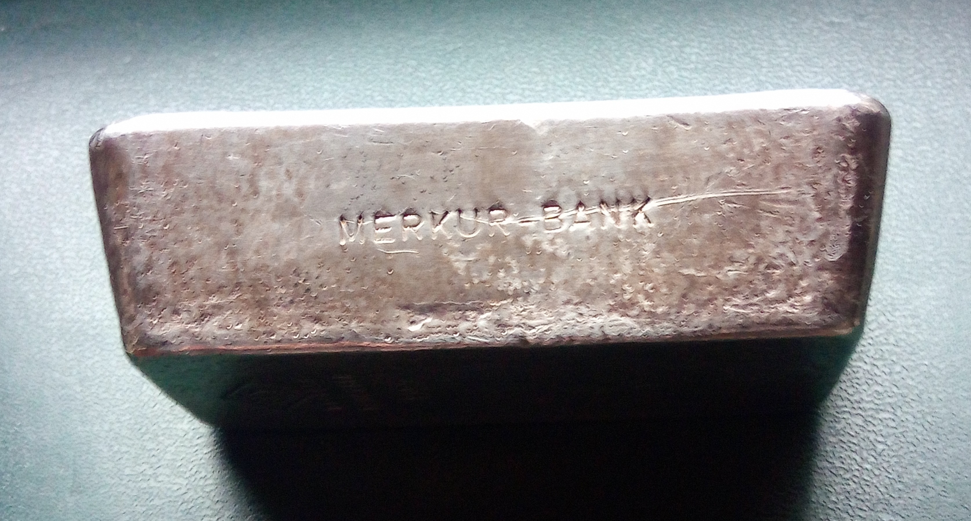Merkur Bank, gibt es auf älteren Degussa Barren, gesucht und teuer.