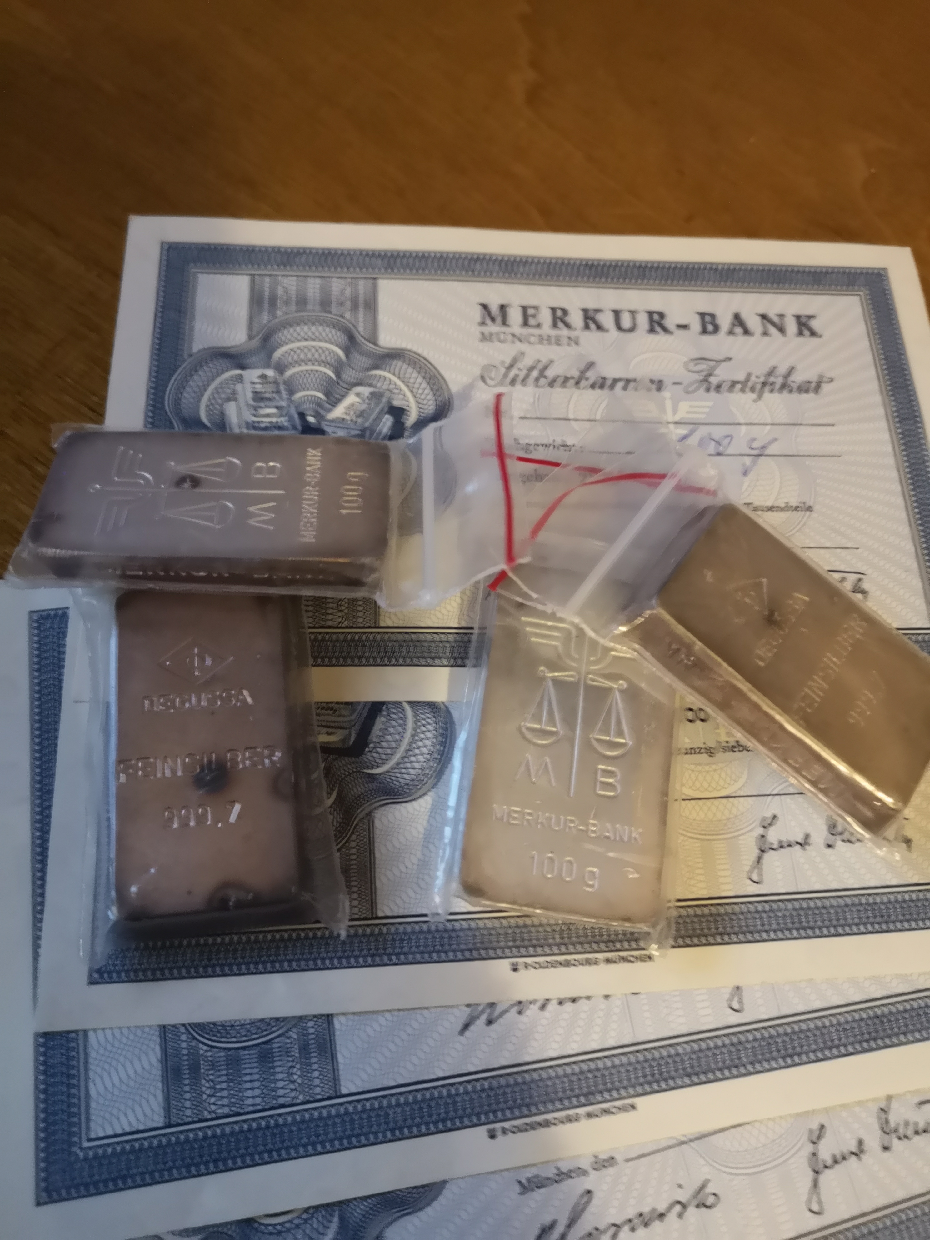 Ich habe auch zwei davon...also Merkurbank...den Hunni in silber und den Tausender in gold.