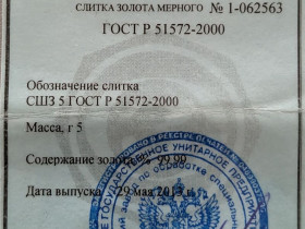 Als Referenz ein Bild eines Zertifikates (dieses ist von einem meiner russischen 5g Goldbarren)