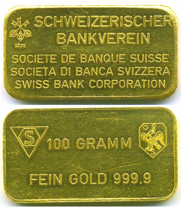 Bei gestanzten Goldbarren kommt diese Schoene / SWISS BANK CORPORATION Ausführung recht häufig vor. Jedoch ist mir diese noch nie bei gegossenen Gold- und Silberbarren begegnet.