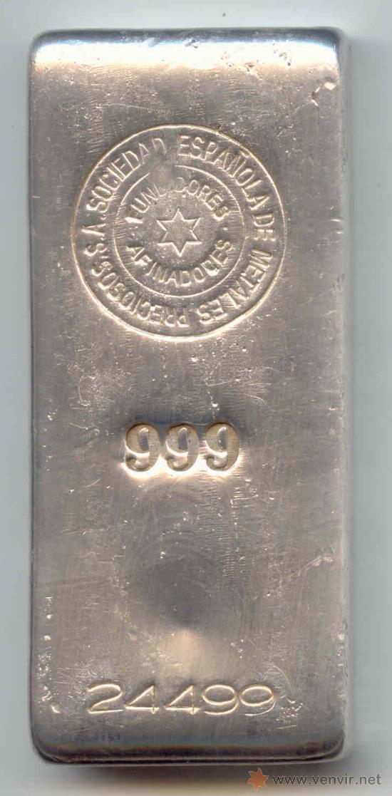 In dieser alten Auktion wurde auch ein Silberbarren (999) mit der Aufprägung "Plata Fina " angeboten.