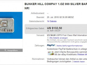 In dieser alten Auktion wurde auch ein Silberbarren (999) mit der Aufprägung "Plata Fina " angeboten.