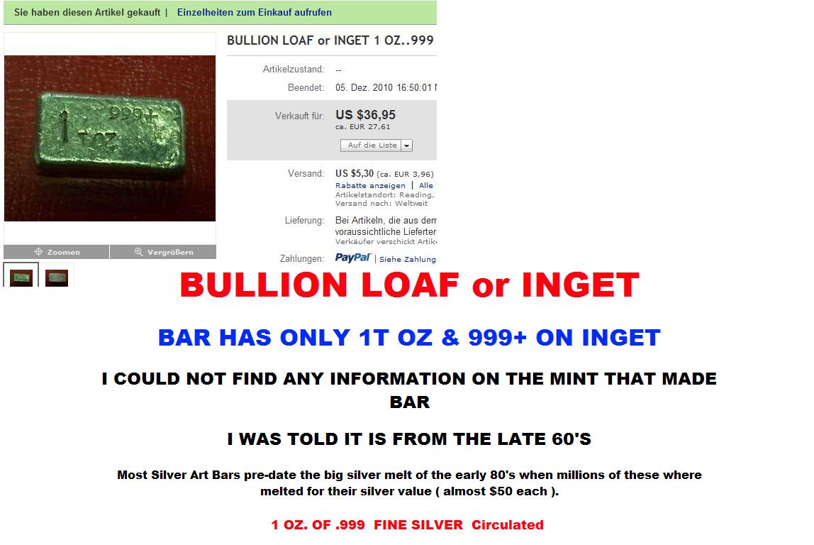 auf übliche Zweitmarkt Barrenpreise) . In der Bucht allerdings wird gerader wg. Unkenntnis und "Egalität"