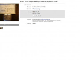 Am 24.01.11 ist nochmals ein zweiter - 1 Oz. AG Barren aus gleicher Quelle aufgetaucht....das Ergbnis beider Auktionen nochmals im direkten Vergleich s.u.