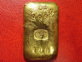 Ich finde, dieser 100 g S.B.S.-Goldbarren ist dem Gussmeister sehr gut gelungen - ein ausgesprochen schönes Exemplar.