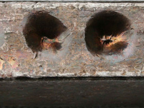 Es handelt sich wohl um eine sehr häufig anzutreffende Barren-Gewichtstrimmung. Mittels Bohrer, Fräser oder Brenner wurde etwas mehr als das überschüssige Material entfernt, um anschließend das Fehlende wieder flüssig zu ergänzen. Ich denke jedoch, dass gleiches Verfahren auch bei Materialprüfungen angewendet wurde/wird.