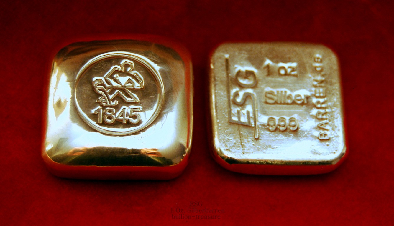 beginnend im neuen Jahr und ergänzend zu GM seinen "Neuzeit" Güsslingen möchte ich euch hier die ersten neuen Silber Gussbarren der ESG vorstellen. Die Bilder zeigen die Version in 1 Oz sowie in 50g Silber gegossen als Barren in Quaderform. Diese werden einzeln verschweisst in Folie geliefert. Allerdings was wären Gussbarren in Folie wenn man diese nicht anfassen darf - daher habe ich je ein Exemplar aus dieser befreit und ...ein wirklich geiles Gefühl - besonders der 1 Ounzer ist mein absoluter Hosentaschen Favorit.. ![]()