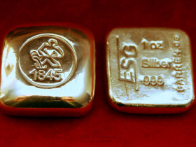 ZitatGegossene Goldbarren der Serie werden in Pforzheim bei Heimerle+Meule gefertigt. Das dabei verwendete 99,99% reine Feingold stammt aus dem Edelmetallrecycling / Ankauf von Altgold der Firmen ESG und Heimerle+Meule. Die Produktlinie wurde auch auf kleine Gussbarren (1oz, 50g und 100g) ausgeweitet um damit dem Wunsch zahlreicher Kunden nachzukommen. Hinweis: Gegossene 1oz und 50g Goldbarren werden ab KW2 2012 angeboten und ausgeliefert.