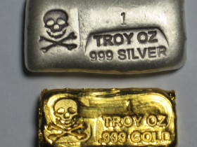 Der linke Barren dürfte eher speziell für US-Münzsammler hergestellt sein. CC wohl für Carson City und das Adler-Design kommt mir auch bekannt vor ![]()
