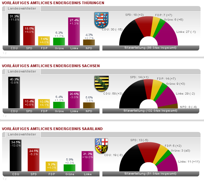 Wahlsieger: die Linken aufgrund der Protestwähler (Stichwort Millionenboni an die Bänker und an mich nur Hartz IV)