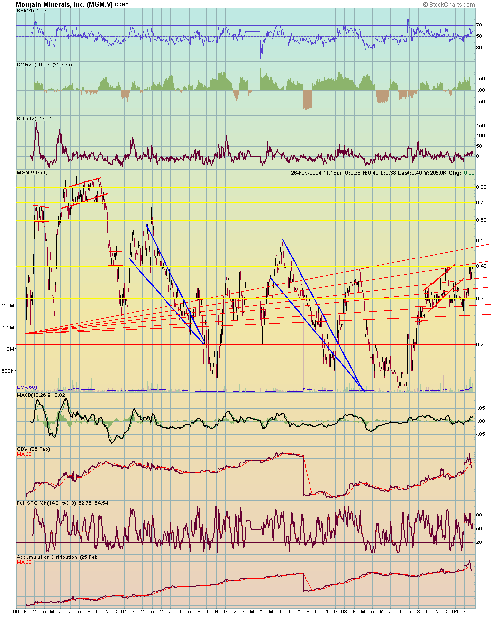 This tiny Jr. is located on one Island in the Philippines. Management has an elephant gold property. this Jr. has 420,000 oz's Au & 1.5 million oz's Ag in reserve status. To date 18 new high quality gold veins have been found. Not only are these veins open to length, they are near surface enabling very low cost open pit mining. They are finding new veins almost every month and the excitement is how big is the elephant. this Jr. is a no risk, high opportunity play. With a current market cap of only $3 million and only 5 million shares, this Jr. at only .56 cents a share is a steal. These shares will soon be almost impossible to buy.