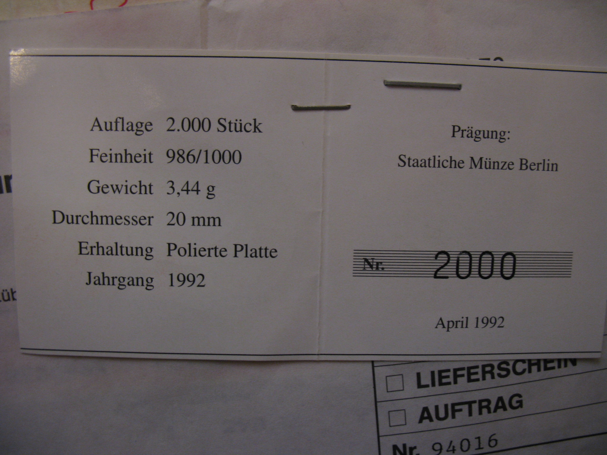 Lediglich die Goldmedaille (ebenfalls von der Münzprägestätte Berlin) ist limitiert, und zwar auf 2000 Exemplare... sieht fast so aus, als habe ich die "letzte" erhalten - habe ich auch erst jetzt bewußt registriert ![]()