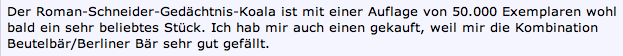 Selbst der ehemalige Arbeitgeber von RS bietet die Privy-Koalas für "nur" 33,50 € an. Erstaunlich, dass sie dann bei ebay teurer sind. :hae: