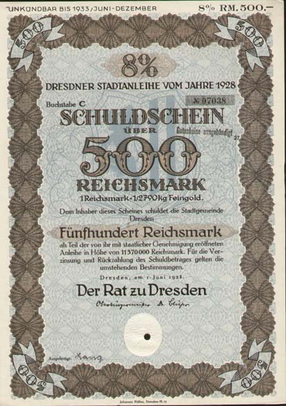 wegen einer nie getilgten Anleihe aus der Vorkriegszeit zu. Die Stadt