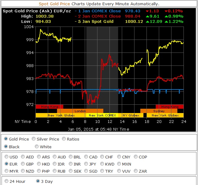 Aber: Ich wette, Giold wird auch 2015 positiv auf Euro basis performen! Da ich inzwischen davon ausgehe, das es allen ernstes zu 1:1 Dollar zu Euro kommen wird, ist das keineswegs eine gewagte Prognose.