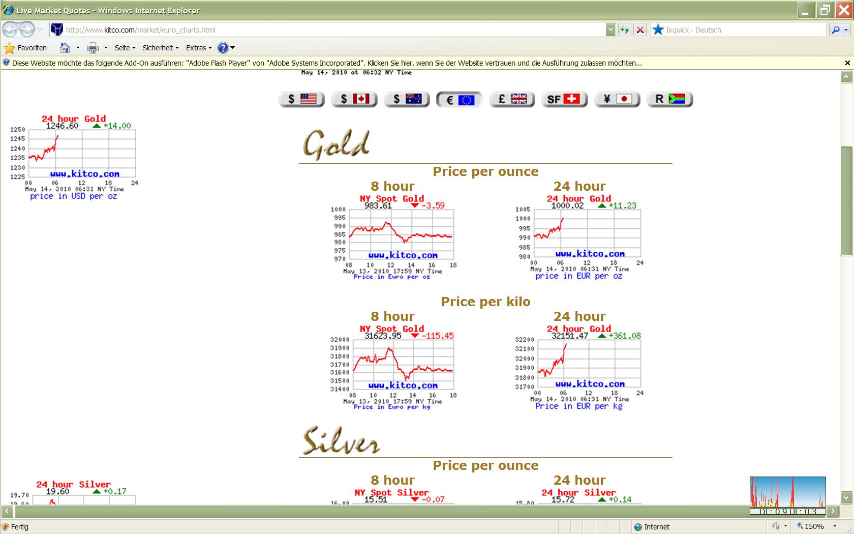 Gönnen wir dem Euro mal ein paar Monate Erholungspotential. Wie ich las, geht das Pfund abwärts und auch der Dollar wird wieder ins Gerede kommen. Gegen Gold fällt er ja sowieso schon; auch ATH Gold/USD; die 1250 scheint nur noch eine Sache von Minuten zu sein.