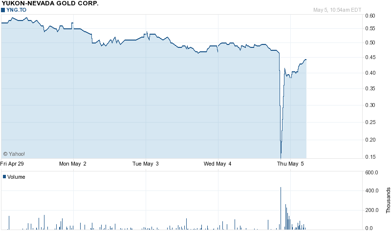 "...According to Yukon-Nevada Gold Corp., there have been no material changes to its operations or its business affairs, and the company is not aware of any undisclosed developments that would account for the unusual trading activity of its shares on May 3, 2011.