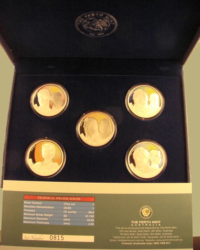 würde mich gerne von mind. einem Satz 5 x 1 oz Australien trennen. Im World of Coins finde ich ihn nicht, ist aber mit Zertifikat von der Perth Mint und ist auch sonst wohl im Originalzustand: Blaue Schatulle mit Kunstledereinband plus Schutzumschlag und Zertifikat. Feinheit wie immer 999er Silber, Proof Quality, Auflage laut Zertifikat 2.500 Stück. Ist Gott sei Dank ein ges. Zahlungsmittel ( jeweils 1 Dollar) und nicht so ein Medaillenschrott wie von einigen Emittenten gerne verkauft wird. Preis bei der Perth Mint je nach Wechselkurs um die 250,- € . Preisvorstellung ab 200,- plus Versand. Bei Interesse bitte PN