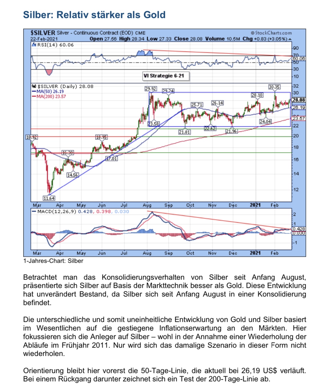 An den Märkten ist man als Anleger geradezu verpflich- tet, auf Entwicklungen gefasst zu sein, die so vorher nicht absehbar waren. Dazu zähle ich das, was über ei- nen Reddit-Blog Ende Januar versucht wurde. Nämlich Silber unter Dampf zu setzen – und das mit Argumen- ten, die man bestenfalls noch als amüsant bezeichnen kann (siehe VI-Strategie 4-21).