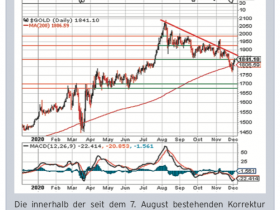 Für ihn ist die Korrektur erst vorbei, wenn Gold das Novemberhoch 1966$ überwunden hat. (siehe Anhang)