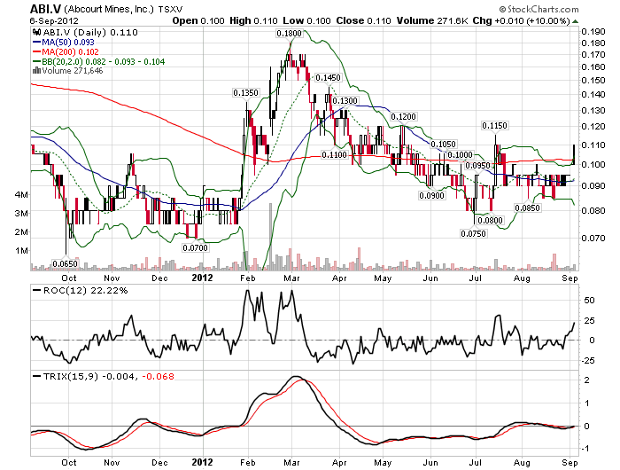ABI.V has a market cap under $17M CAD, ~$6M in the bank (as of March 18, 2012), and possesses resources of significance with large growth potential that appear to position it as grossly undervalued....