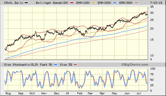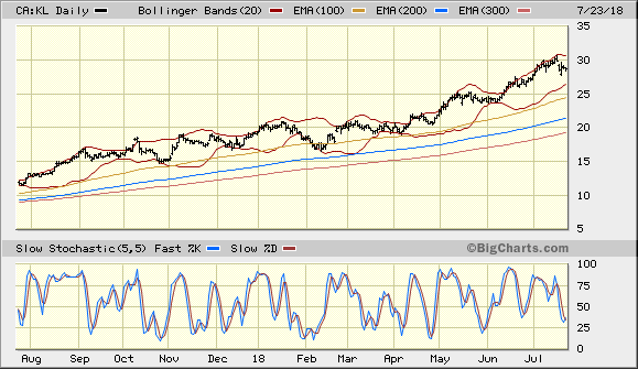 BMO just (7/18) downgraded KL, to 'market perform', from 'outperform'
