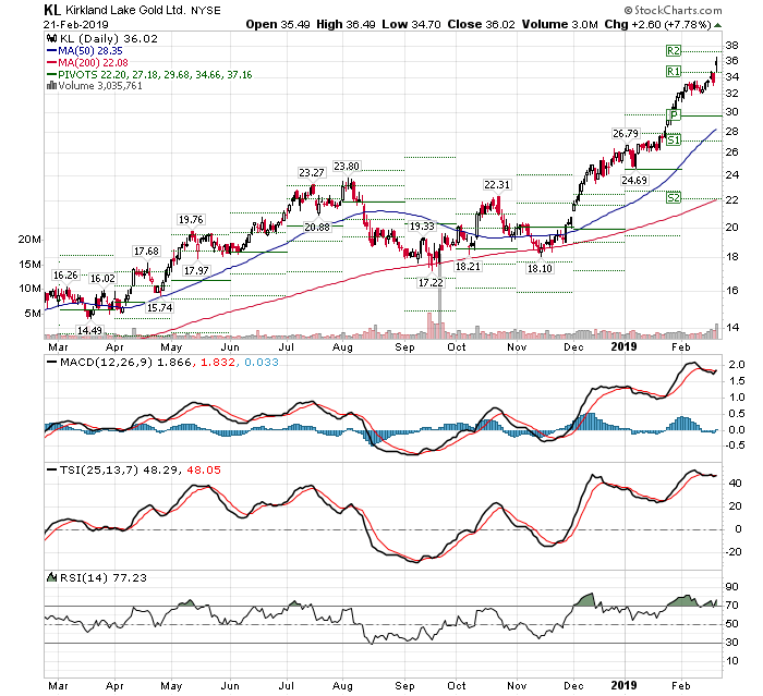 Die Kursentwicklung von Kirkland wird allmählich phänomenal mit extremer rel. Stärke...... Selbst Verkaufssignale wie gestern werden ignoriert, aber hier helfen die ständig guten Infos.