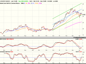 Ein bearisher Count wäre z.B. ein Double Zig Zag, bei dem die 38,80 C$ die W (abc) und die kürzlichen 44,51 C$ die X (abc) oder auch erst die a der X gewesen sein könnte(n) und noch eine Y (abc) folgen müsste. Dann wäre das Ziel in etwa bei 35 C$.