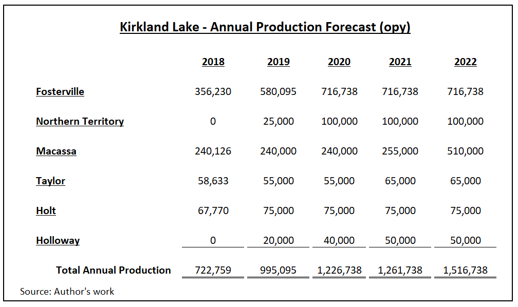 Fosterville stagniert ab 2020 und Macassa wird nach den Prognosen erst 2021 interessant.