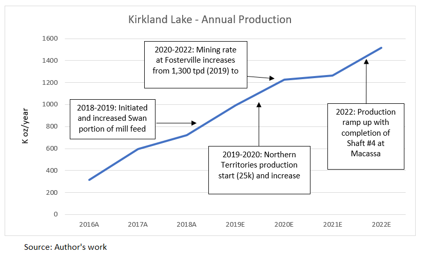 In diesem Abschnitt werfen wir einen Blick auf die Produktionsgeschichte von Kirkland Lake seit der Fusion mit Newmarket im Jahr 2016 und seine Wachstumsaussichten.