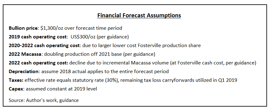Tabelle 1a enthält die wichtigsten Annahmen, die meiner Produktionsprognose 2019-2022 zugrunde liegen. Tabelle 1b enthält die detaillierte jährliche Produktionsprognose der Mine für jedes Jahr.
