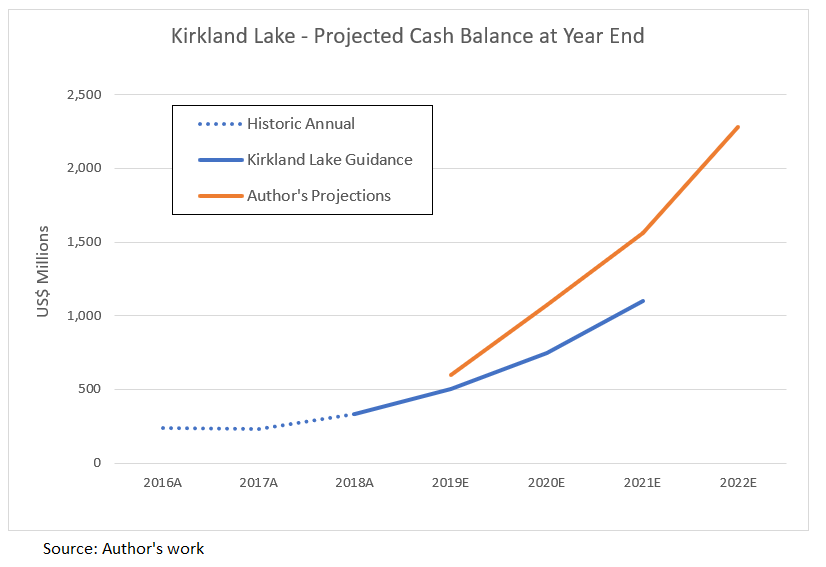 Unabhängig davon, ob Sie meine Prognose oder die Guidance von Kirkland Lake nutzen, ist es klar, dass Kirkland Lake im Prognosezeitraum einen massiven Liquiditätsaufbau erfahren wird.