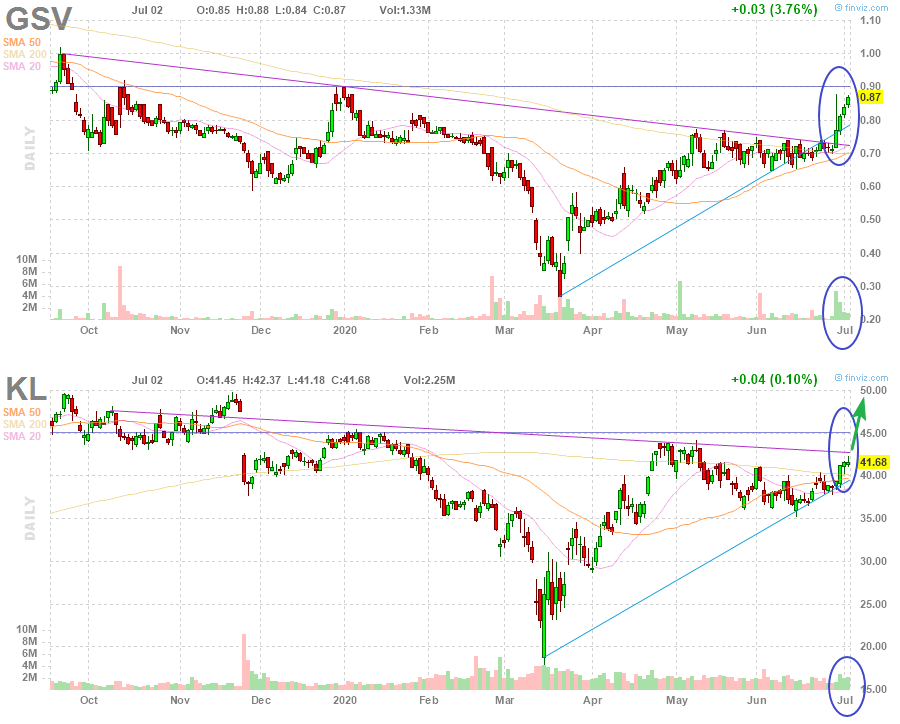 Zumindest sieht Plunger dieses Muster bei etlichen Minenaktien, auch KL: "Many doubters for Kirkland Lake due to Fosterville reserves. The chart has no worries. Set-up for a long and extended move up now. Narrowed BB set to power upward thrust."