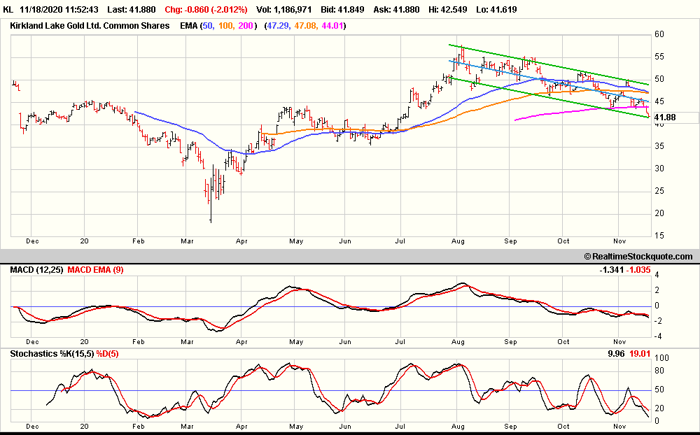Was ist nur in Kirkland gefahren ?? Habe seit längerer Zeit wieder einen Chart mit Trendkanal erstellt. Sieht unfreundlich aus, zumindest die letzten Monate: