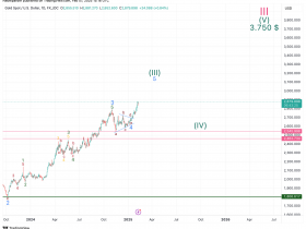 Dieser Hochpunkt sollte dann die Orientierung für die anschließende Korrektur in Welle 4 sein, sobald die ca. 2.938 $ (3) erreicht sein werden.