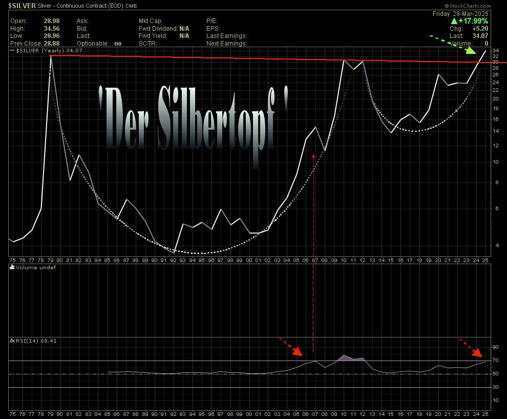 Silber...auf 'Jahresbasis' ebenfalls ! Hier ist das 'Formationsziel' off the maps...the sky und so...