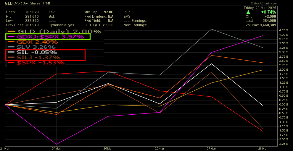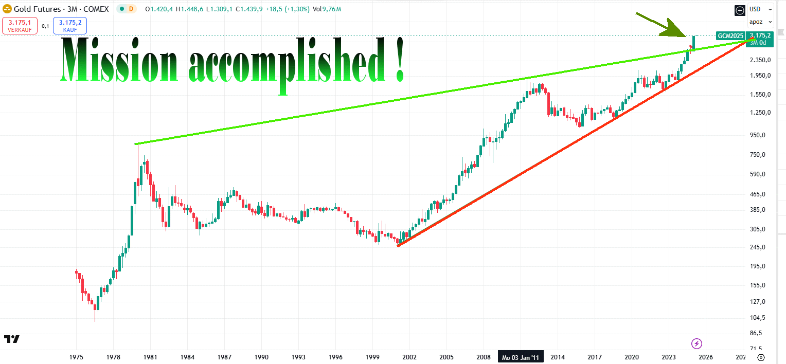 …dann kommt‘s vlt. so, dass mit den heutigen Zollankündigungen der breite Markt eine Rallye startet (…sell the rumour buy the fact)…und der Abverkauf in Edelmetall beginnt. Bin gespannt.