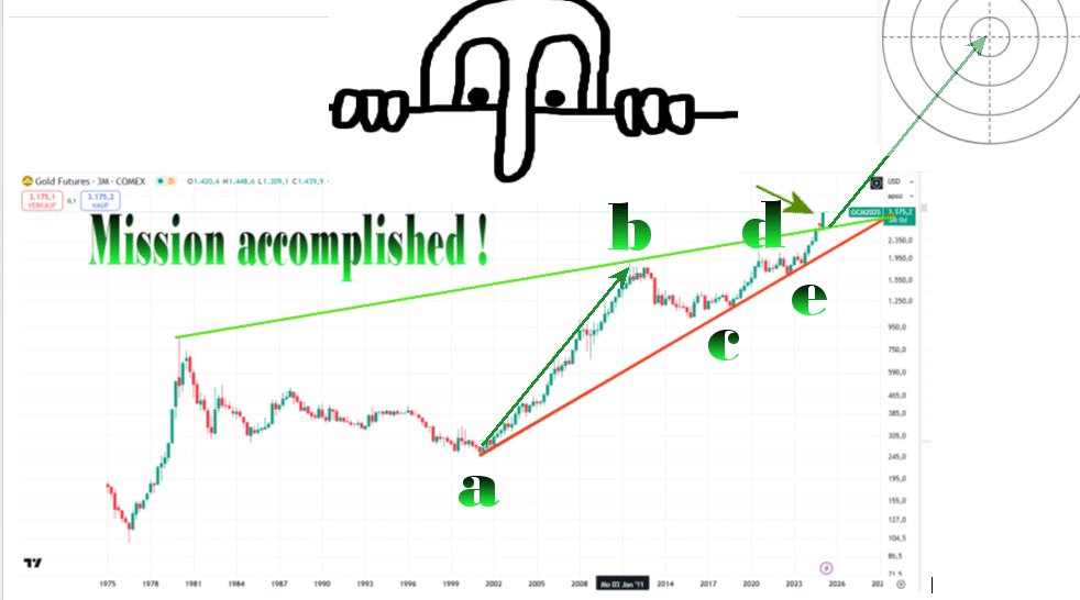 Alles wie bereits angedacht ! Gold stürmt weiter nach oben . (Formationsziel weiter nicht erreicht! )