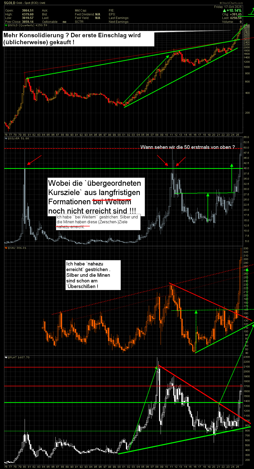 …’der alte‘ und ein ’letztes Mal‘…obwohl ich seit ~ 15 + Jahren Stockcharts-User bin hab‘ ich‘s jetzt erst gerafft, wie man bei Verwendung mehrerer übereinander angeordneter Chartfenstern alle Vehikel log. darstellen kann. ’Der alte….’ ist eben noch in linearer Darstellung, im längerfristigen Bild also fehlerhaft. Jetzt muss ich die ganzen ’alten‘ Charts überarbeiten… ;( ….bin gespannt welche ’formations-technischen‘ Veränderungen sich ergeben (werden).