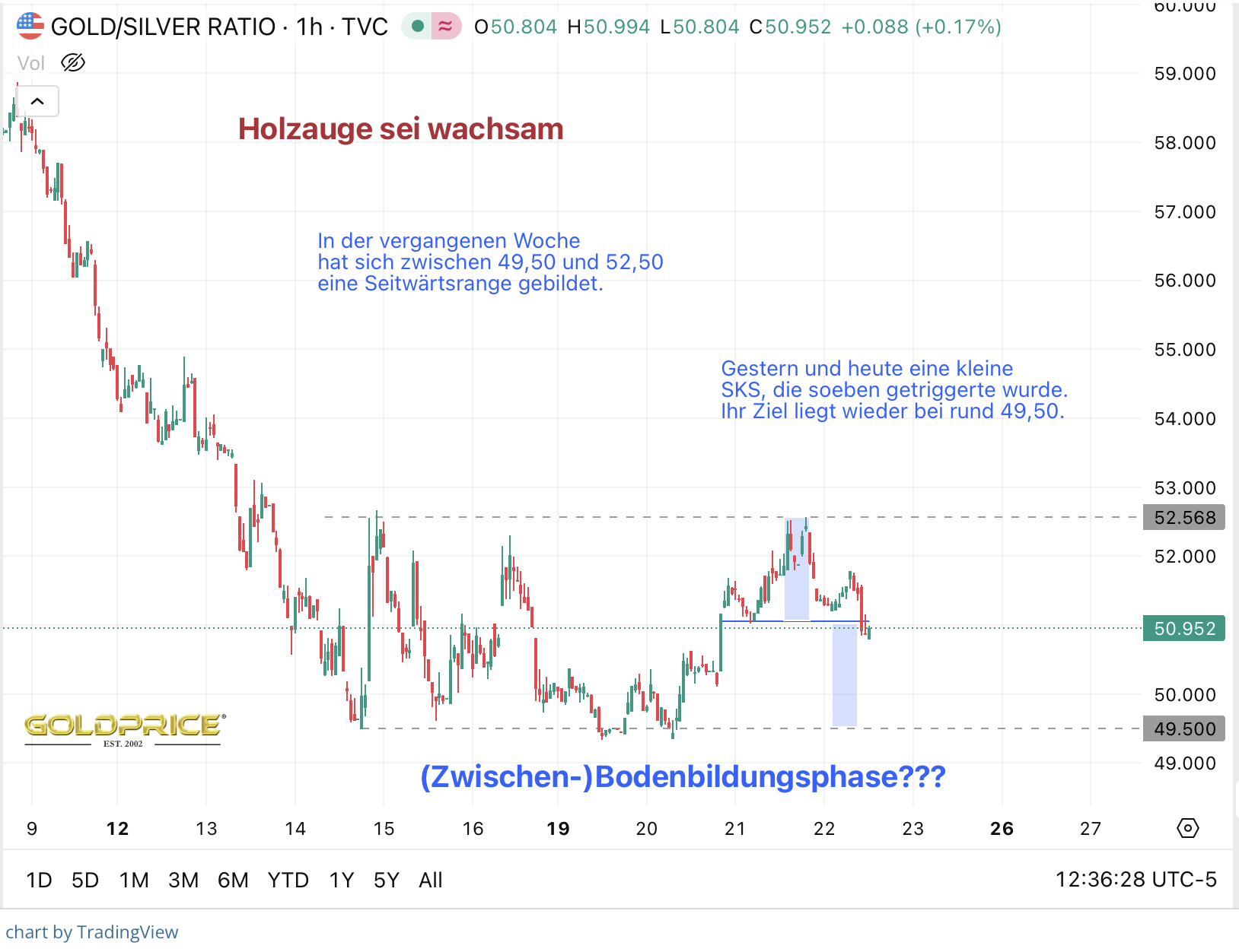 Danke sehr! Darf ich fragen zum GSR-Chart, wie fein aufgelöst ist das? Wochenschluss, Tagesschluss, Wochenkerzen mit Intraday-Hochs und -Tiefs...