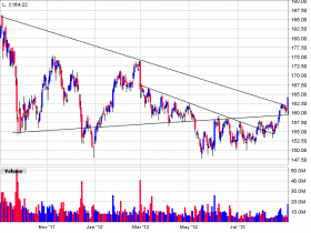 Zum Glück konnte ich gestern das auf und ab bzw. umgekehrt nicht mitverfolgen..... Als ich die Märkte anschaute, war die Richtungsentscheidung bereits gefallen. Da ging so ziemlich alles hoch, was mit Edelmetallen zu tun hat. Und durchs Band mit recht hohen Volumen. Hohe Volumen leiten oft Trendwenden ein; da die letzten Tagen korrigierten (mit tiefen Volumen) kann man wohl davon ausgehen, dass die Bullen noch nicht genug haben und auch nächste Woche den Ton angeben werden. Zumal die wichtigste Trendlinie beim Gold geknackt wurde.