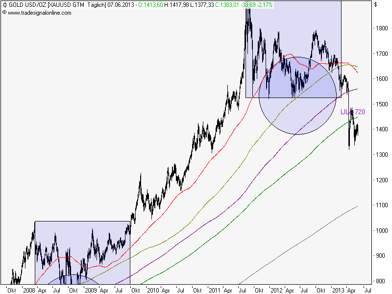 Das 'Muster' ist klar. Jeder 'starke' Goldtag wird gekontert. Der einzig sichere Trade zur Zeit: macht Gold ein veritables Plus, kann man am nächsten Tag bedenkenlos shorten. ![]()