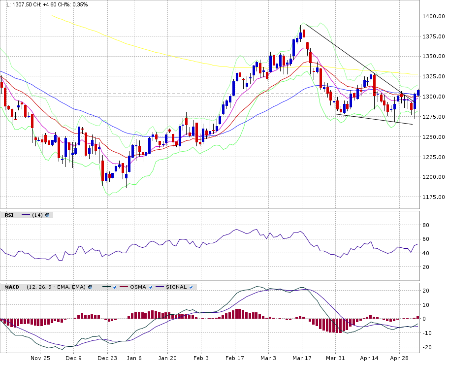 Gold schaut bereits über die Abwärtstrendlinie. Der erwartete Angriff der Bären um 14.30 Uhr ist gekommen ....und wurde gekontert. Mal schauen, ob man sich halten kann hier. Neue Hochs über 1306 wären jetzt schön, wobei ich meine, dass das schlimmste bereits abgewendet wurde. Somit wechsle ich per sofort hinüber ins ganz vorsichtige Bullenlager. Ein weiterer Test nach unten muss nun nicht mehr kommen. Rückfälle in die mittleren 1280-er möchte ich aber bereits nicht mehr sehen
