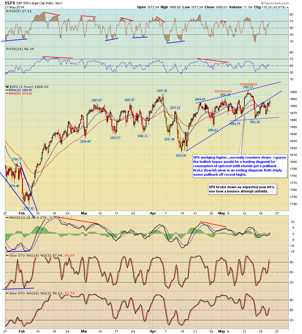Aktien: Die letzten Tage sehr "choppy", gute Tage wechselten mit schlechten Tagen ab; bedeutet wohl, dass Energie gesammelt wird für einen Move. Aktuell sind Aktien, Chart 1 SPX, im oberen Bereich hart an der Kante zum Ausbruch. Noch immer könnte es eine S-K-S werden, aber dann müsste es jetzt runter gehen. Bei einem Ausbruch nach oben würde ich aber nicht erwarten, dass völlig durchgestartet wird. Schnelle 2 % in den Indizes sind aber möglich. Risikoreich ein Short hier mit knappem Stop ist überlegenswert.