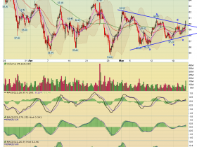 Dies ist nun eine weitere Chance für Gold, nämlich ein Backtest der Aufwärtstrendlinie. Meine Zuversicht ist aber recht bescheiden geworden. Trotzdem will aber ein Bruch der Trendlinie sehen, bevor ich ins Bärenlager wechsle.