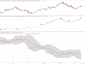 Tageszyklus aufwärts, Widerstand oberes Bollingerband bei 1318, evtl. Rücksetzer analog Juli (Kreis)