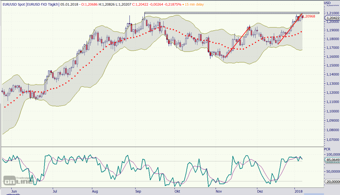 Bei ca. 1,21 hat der EUR/USD einen starken Widerstand.