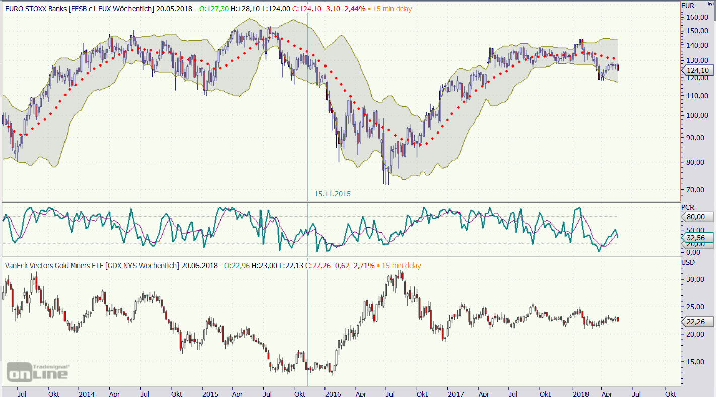Wochenchart Banken EST50 im Vergleich zum GDX als Anhang