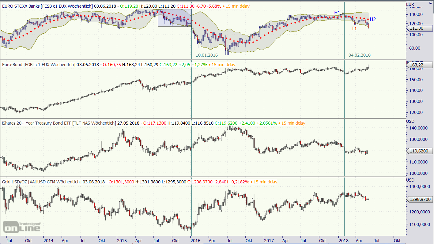 Erst fielen die Banken, dann stiegen die Anleihen, dann stieg Gold.