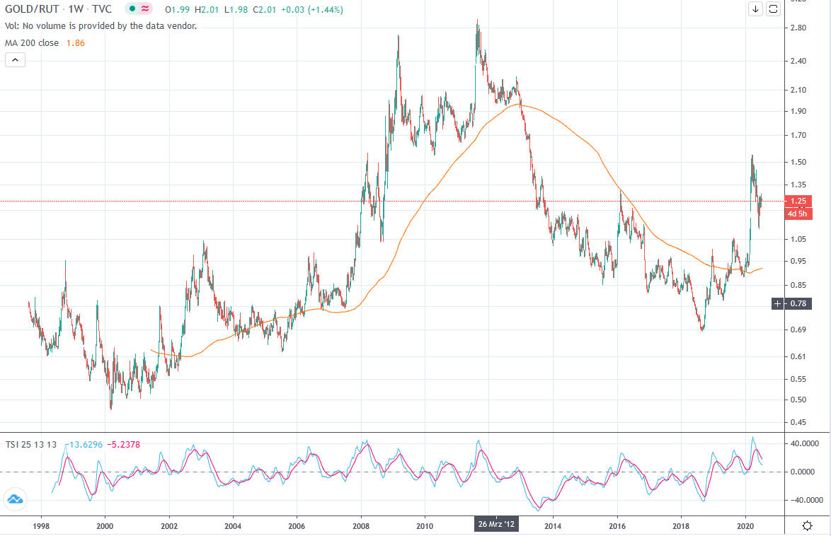 Anders als der Twitter-Analyst dessen Chart Timesystem gepostet hat und anders als beim HUI , sehe ich im XAU ein langgestrecktes V nach der abgeschlossenen Bodenbildung 2000 und 2016. Die Formation ist abgeschlossen. Der Ausbruch ist perfekt !